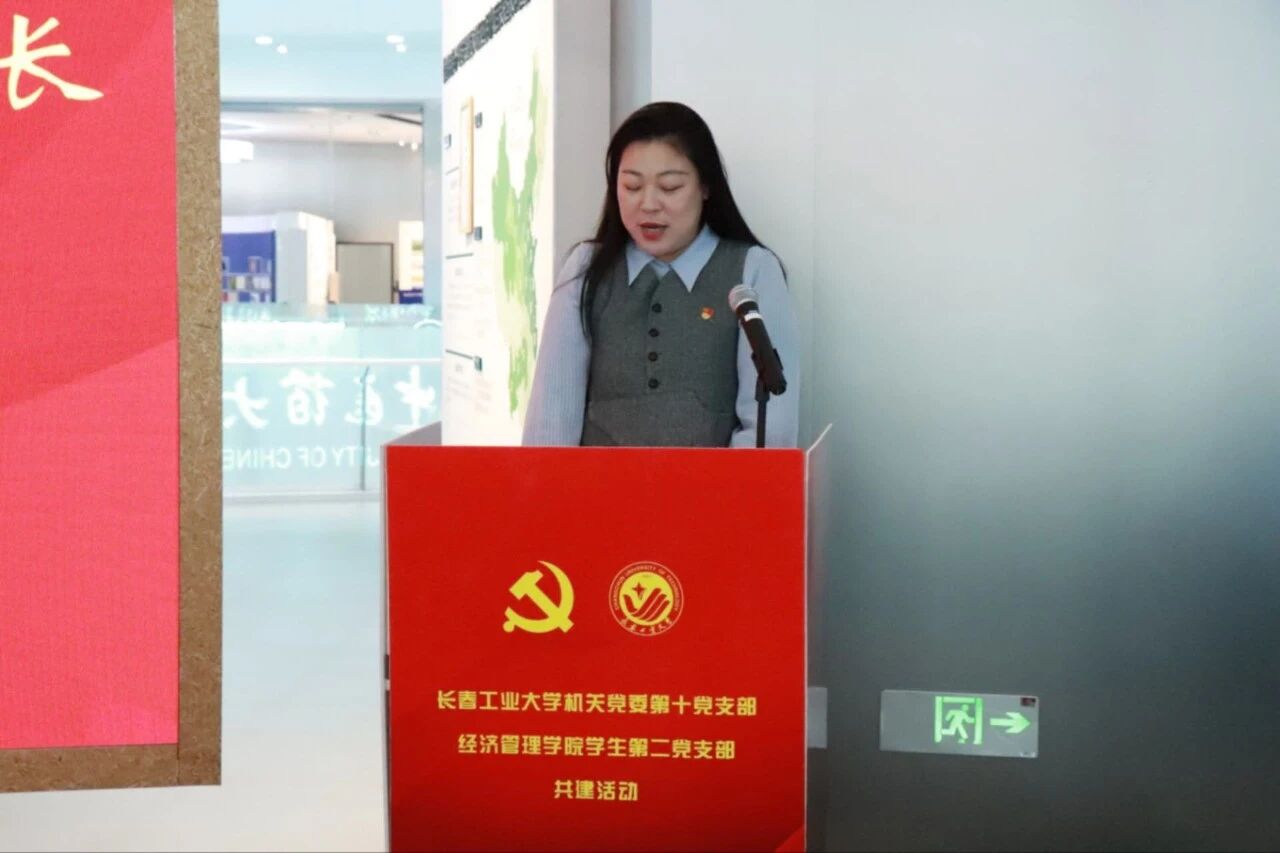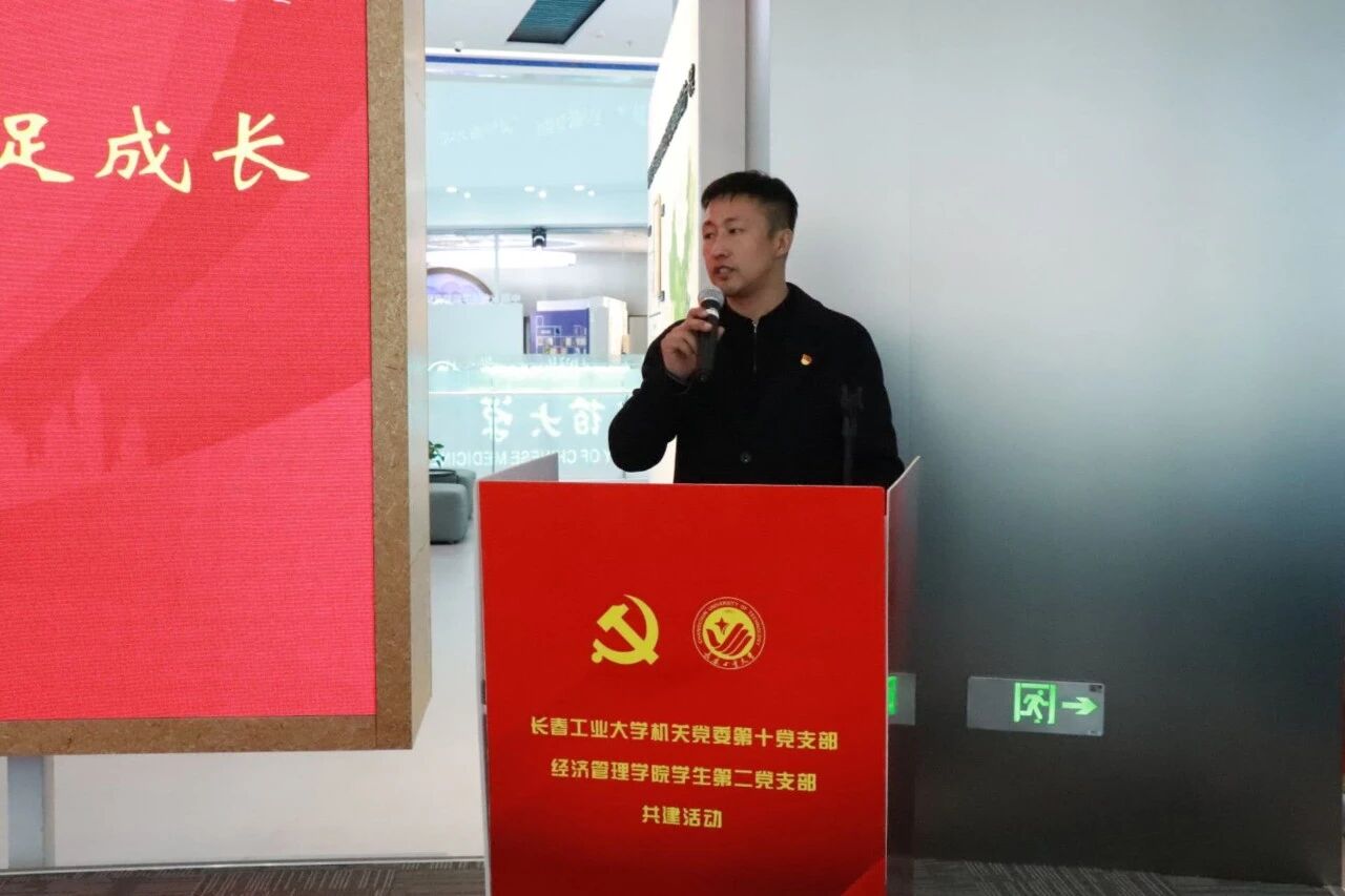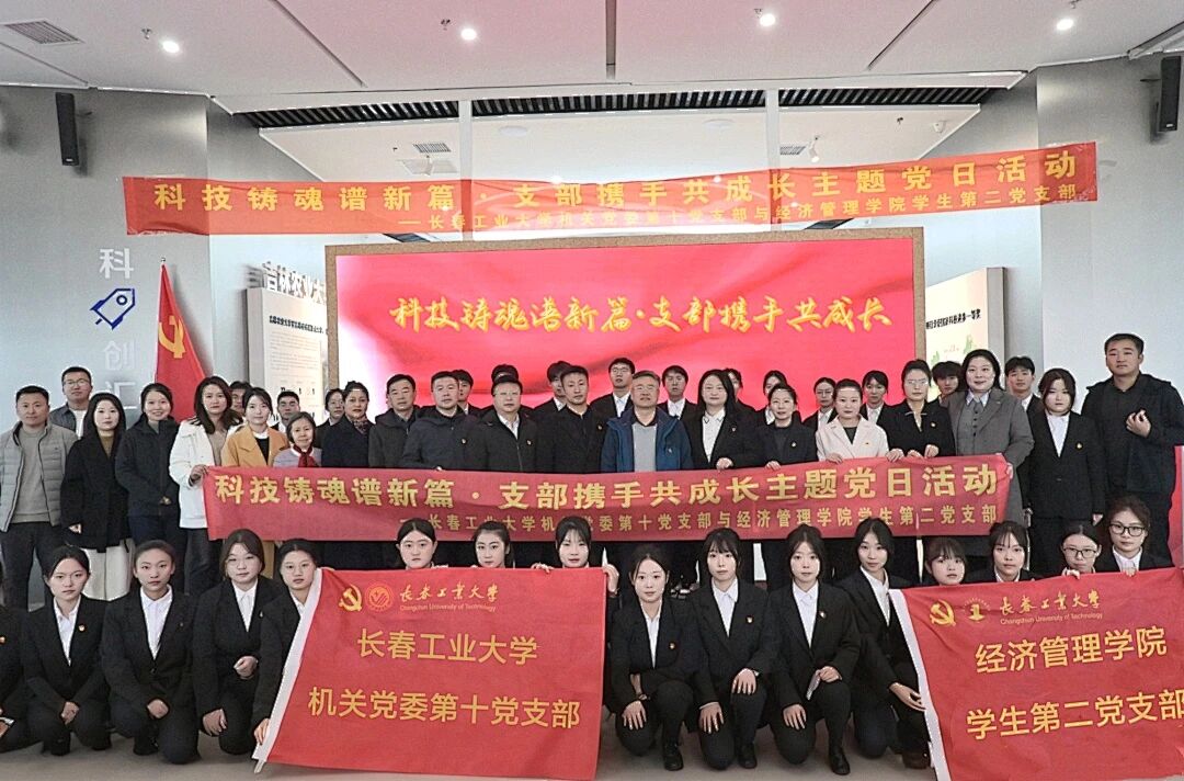 为深化党建引领,凝聚支部发展合力,实现组织资源共享、优势互补、双向赋能,机关党委第十党支部与经济管理学院学生第二党支部于10月30日在长春新质生产力中心开展主题为“科技铸魂谱新篇 支部携手共成长”的结对共建活动。 机关党委第十党支部书记、学生工作处处长孙兆龙及全体党员,经济管理学院党委书记朱宏伟,党委副书记刘坤,学生办公室全体辅导员及学生第二党支部全体党员共同参加了本次活动。