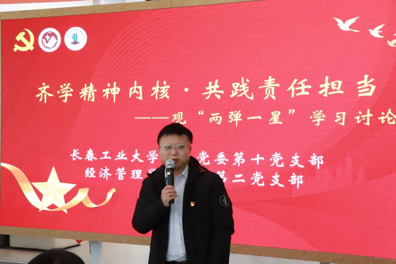 机关第十党支部党员代表、学生工作处副处长周巍表示,“两弹一星”精神是老一辈科研工作者用热血与坚守铸就的精神丰碑,彰显着为国担当的赤子情怀。他勉励学生党员,要从党史中汲取奋进力量,传承艰苦奋斗、勇于创新的优良作风,将个人理想融入国家发展大局,进一步凝聚了党员群体听党话、跟党走的思想共识。