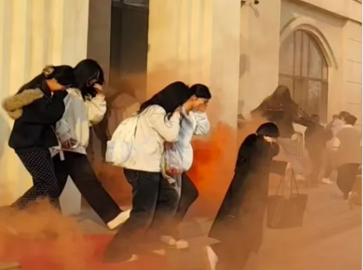 学生使用灭火器灭火