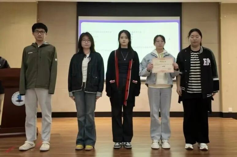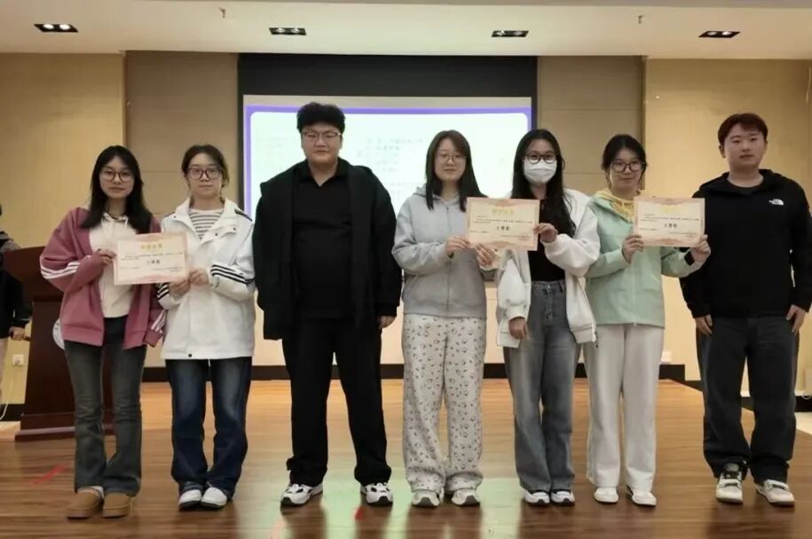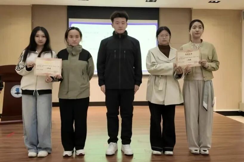 学院学生会学研部副部长李俊宇 为获得三等奖的队伍颁奖