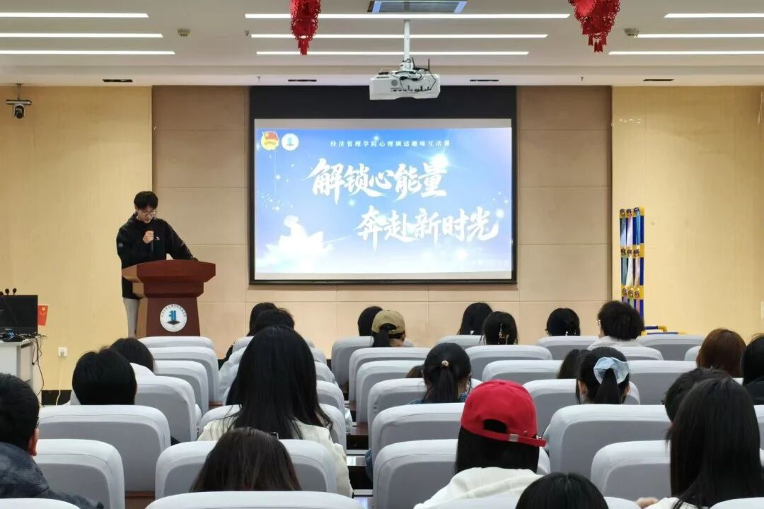 为全面贯彻党的二十大及二十届历次全会精神,深入落实新时代立德树人根本任务,持续提升思想政治工作质效,引导青年学子坚定理想信念、勇担时代使命,经济管理学院于3月25日在主楼617报告厅开展“开学第一课”系列教育活动之“润心赋能第一课”心理调适趣味互动课,将传统游戏与心理知识相结合,通过小组合作、积分比拼的形式,在轻松氛围中普及心理健康常识,提升学生的情绪调适能力。本次活动由社团管理指导中心副主任张艺龙主持。